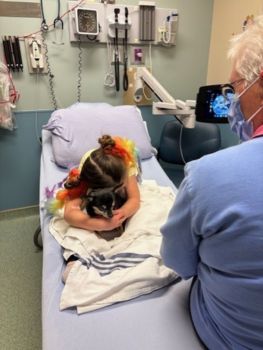 Jazz was especially helpful during needle pokes. I would tell children that Jazz was scared of needles, too, and that we needed to cover her eyes so she wouldn’t see. The children became so focused on protecting Jazz that, before they knew it, the procedure was over.